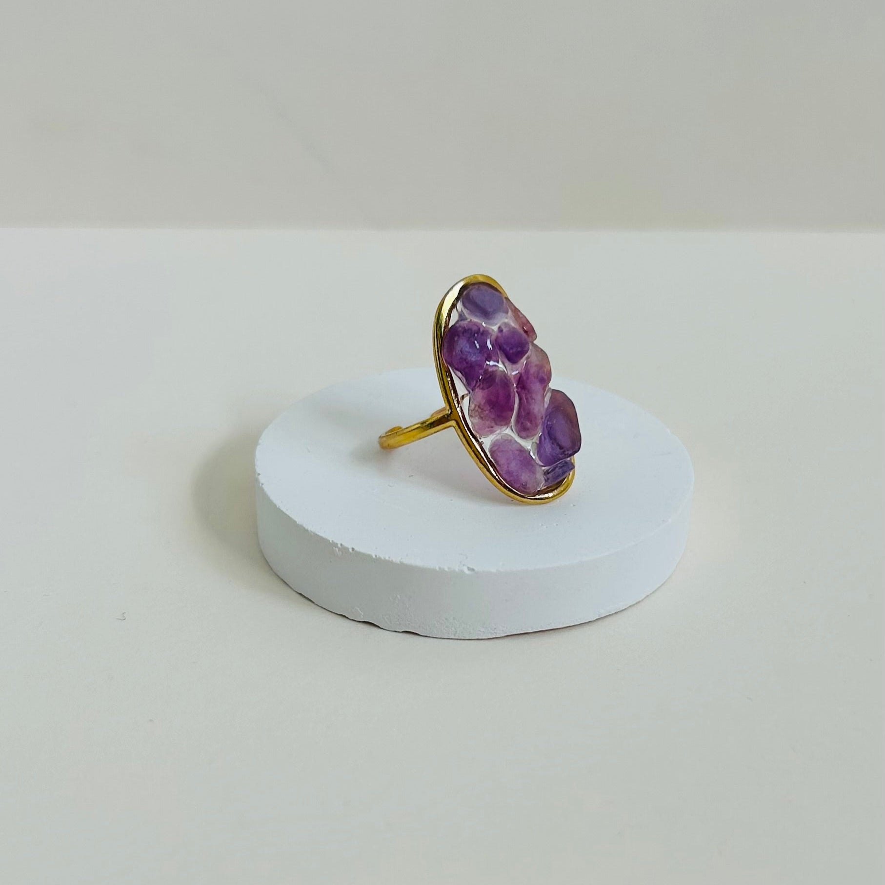 The rockpool of crystals set in resin. Stone size: 2.5 x 1.4 cm. All rings are adjustable.